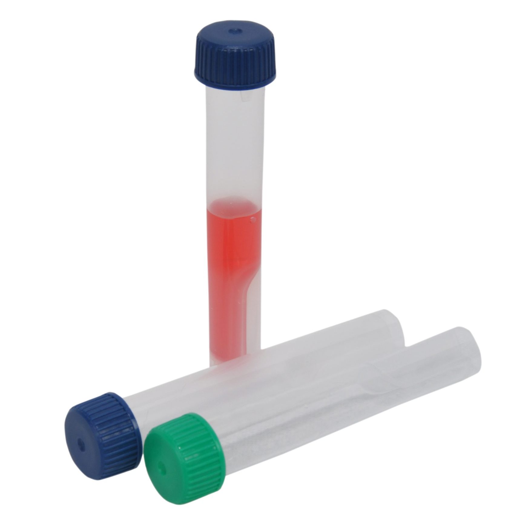 In vitro tanı kitlerinde, laboratuvar veya hasta başı test düzeninde, sıvı biyolojik örneklerin taşınması ve muhafaza edilmesi amacıyla tasarlanmış tek kullanımlık vida kapaklı tüp.